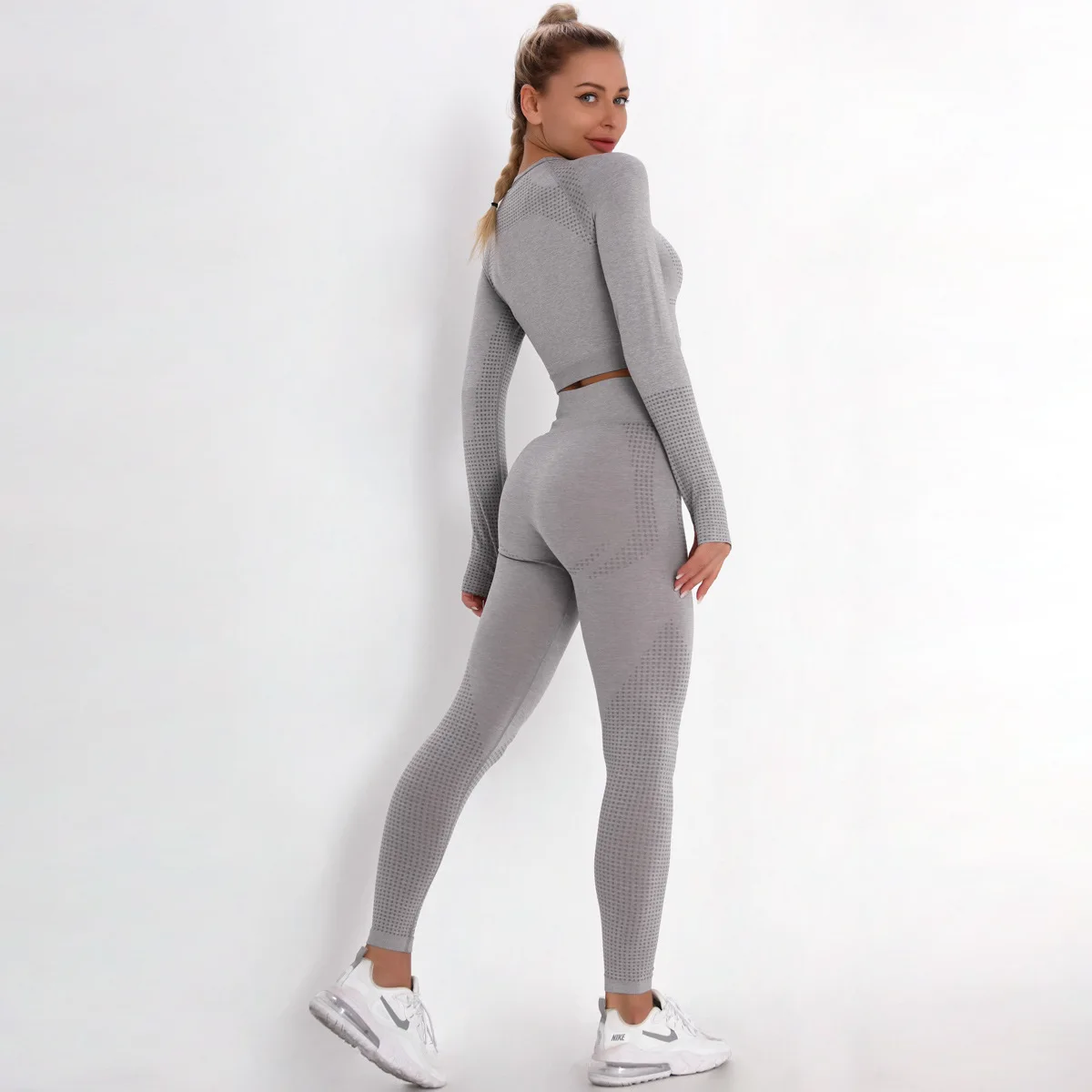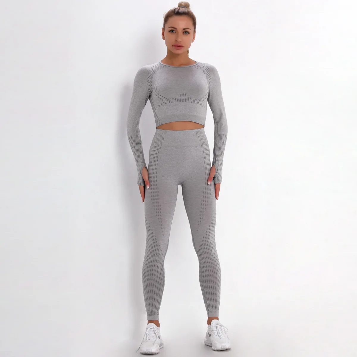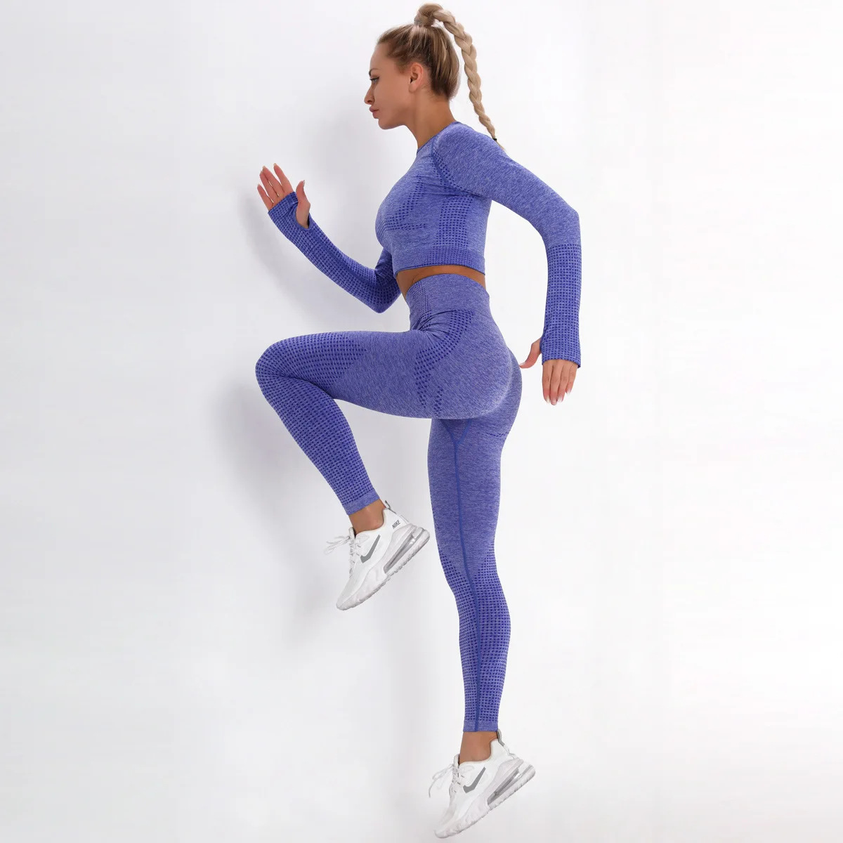 Спортивный костюм, женская спортивная одежда, Быстросохнущий Дышащий тканевый комплект для фитнеса, спортивная одежда, бесшовный тренировочный костюм для спортзала