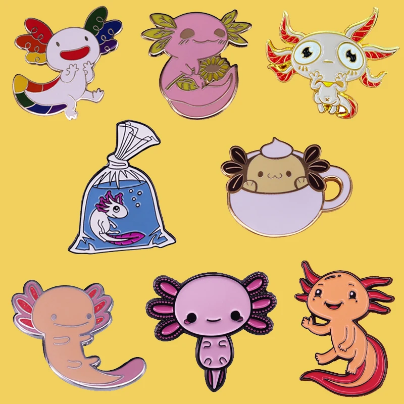 Симпатичные аксолотлевые булавки, значок саламандра, волшебное морс...