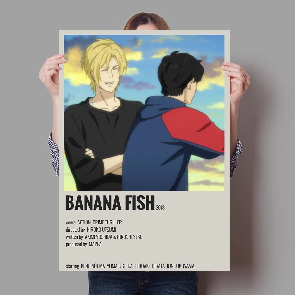 Банановая рыба минималистичный плакат, японское аниме, Картина на х...