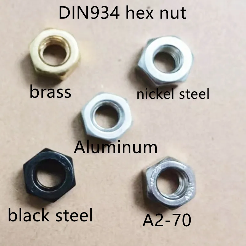5-50 шт. DIN934 M1 M1.2 M1.4 M1.6 M2 M2.5 M3 M4 M5 M6 M8 M10 M12 нержавеющая сталь, латунь, сталь с черной никелевой алюминиевой шестигранной гайкой