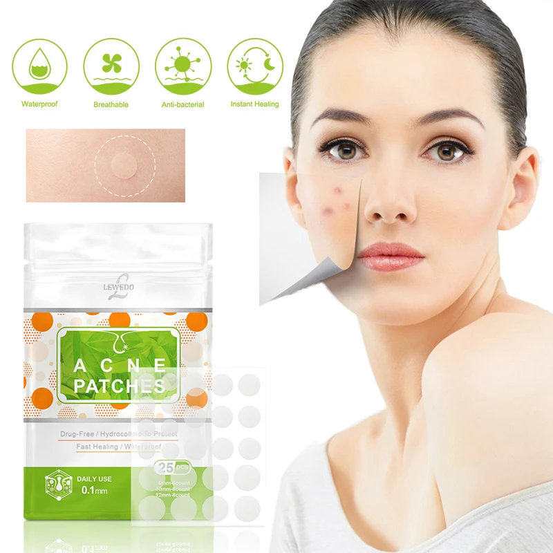 LEWEDO, невидимые наклейки от акне, инструмент для лечения кожи, 25 шт.лист, патчи от акне, водяной клей для искусственной кожи