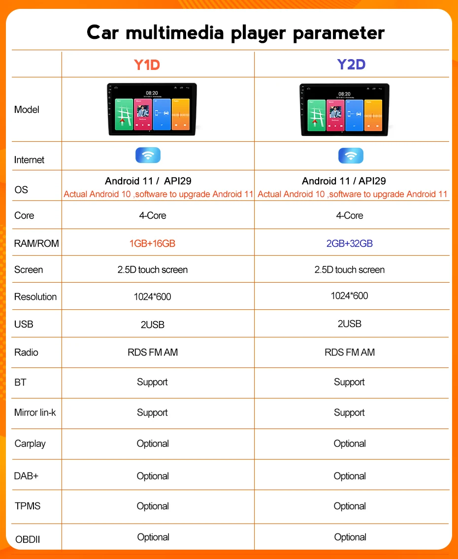 HD 1024*600,IPS 2.5D емкостный сенсорный экран 9 дюймов Экран, 4 ядра, Android 11 API29, 1,2 ГГц Процессор, 1 г/2G Оперативная память 16G/32 ГРОМ,