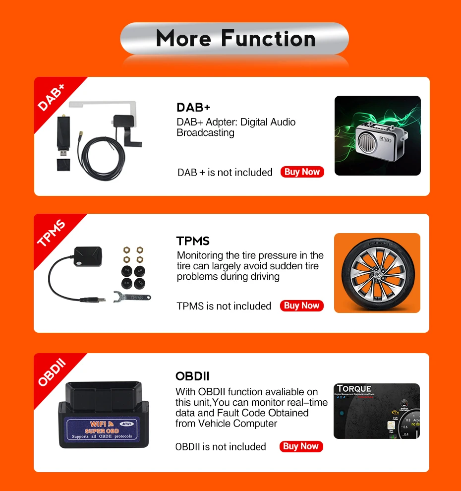 supportWIFI.OBD2 .DVR DAB+ TMPS rear view camera Bluetooth