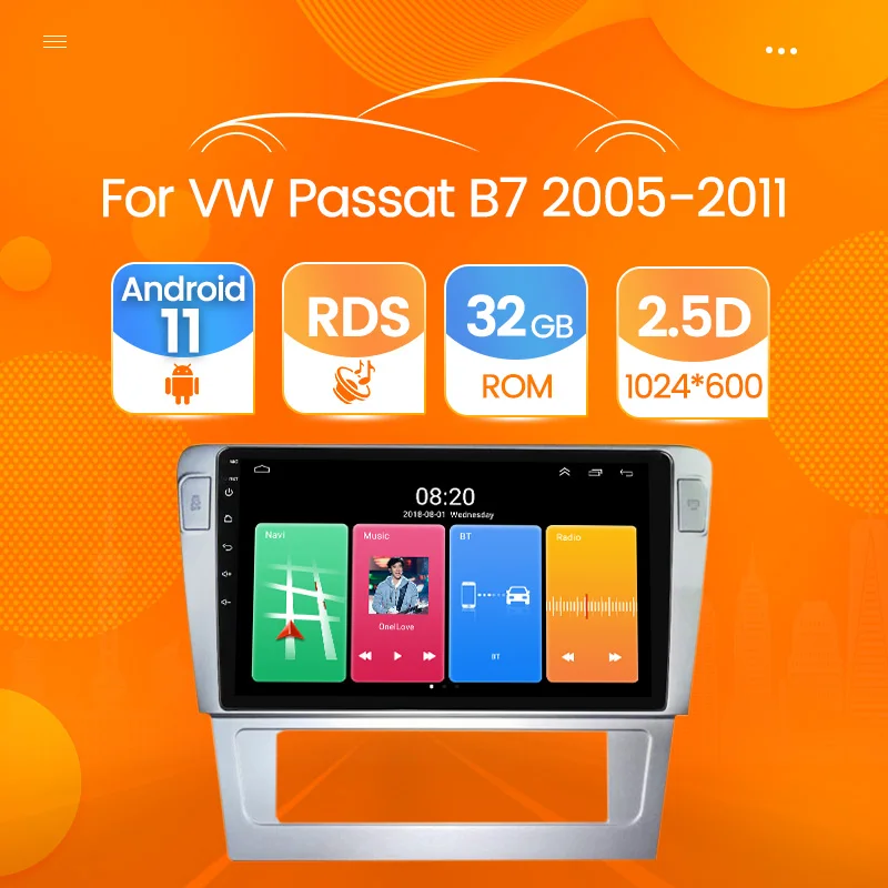 Android11 2 + 32G автомобильный радиоприемник, мультимедийный плеер для VW Volkswagen Passat B7 2005-2011, автомобильный GPS-навигатор, стерео блок RDS WIFI USB BT