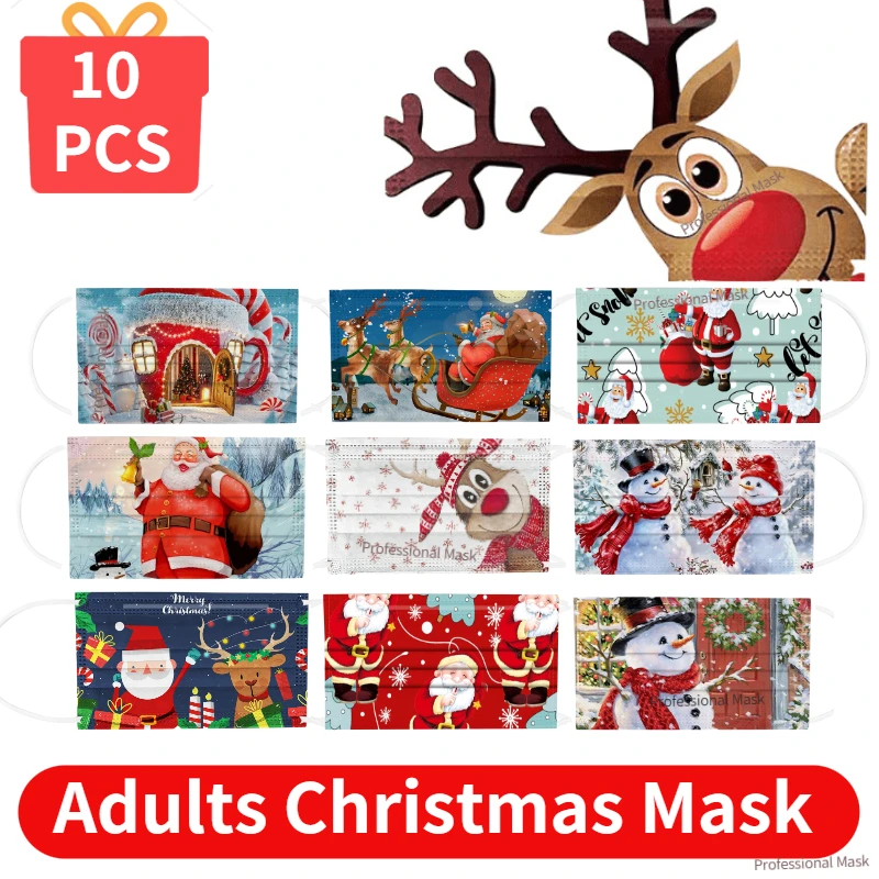 10 шт. Рождественская Маска для лица, одноразовая трехслойная Маска...