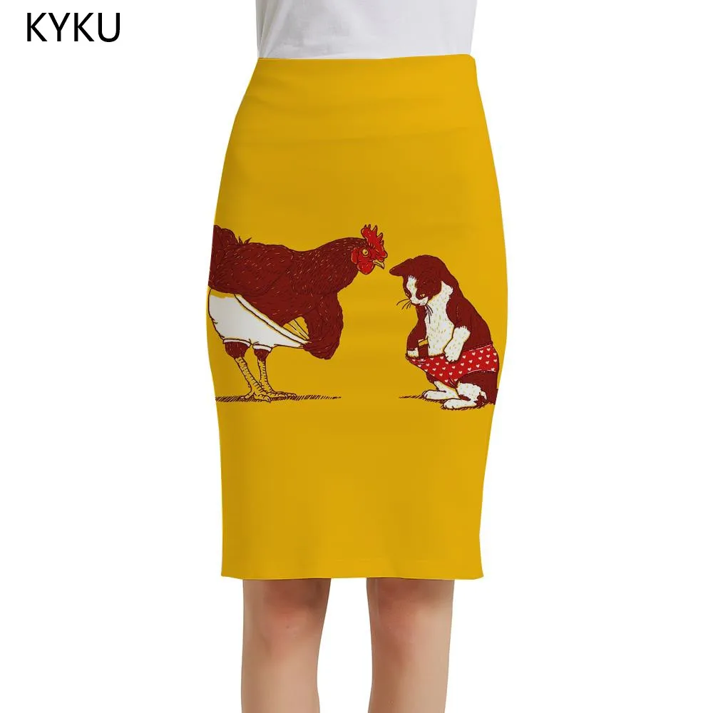Женская юбка-карандаш KYKU, летняя повседневная юбка с рисунком ске...