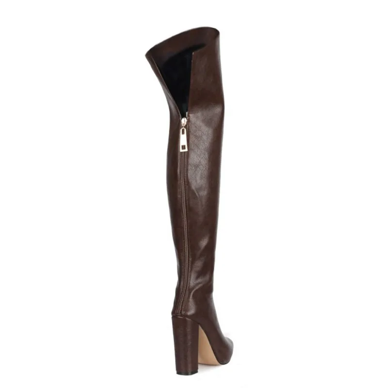 Женские сапоги выше колена, серые сапоги на высоком толстом каблуке, в европейском и американском стиле, большие размеры, новинка 2021