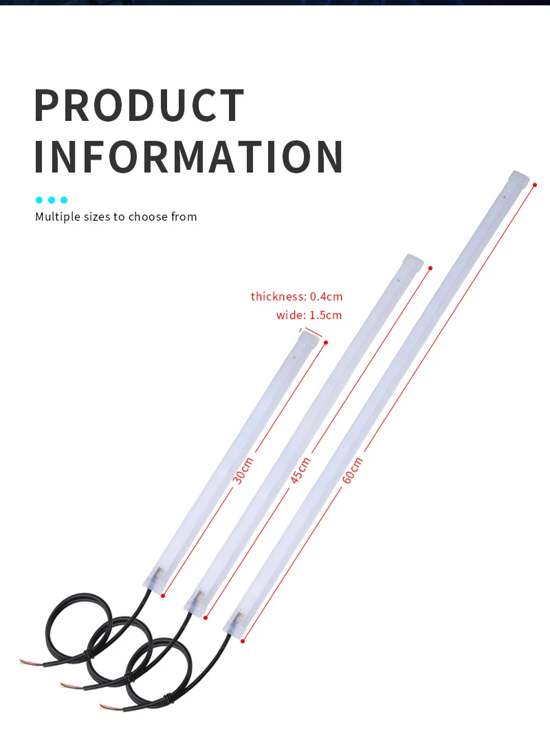 1. Сделайте ваши фары поп! Идеальный способ добавить потрясающий пользовательский вид ваших фар2. DRL и сигнал поворота: яркий белый лайнер с поворотным сигналом, активированным янтарными огнями3. Сгибается по вашему желанию: может быть сгибается, скручивается и контурен, чтобы соответствовать большинству фар4. Просто соединяйте с током DRL и проводкой сигнала поворота30/45/60 см в Длина и вырезанная каждый 4LED бусины (должны запечатать конец трубки, крепится на ручку коляски, клей для Водонепроницаемый защита)Способ установки:Красный провод: Подключение фары или ACC (+)Желтый провод: Подключение сигнала поворота (+)Черный провод: Подключите аккумулятор отрицательным (-)Посылка: светодиодный фонарь дневного света