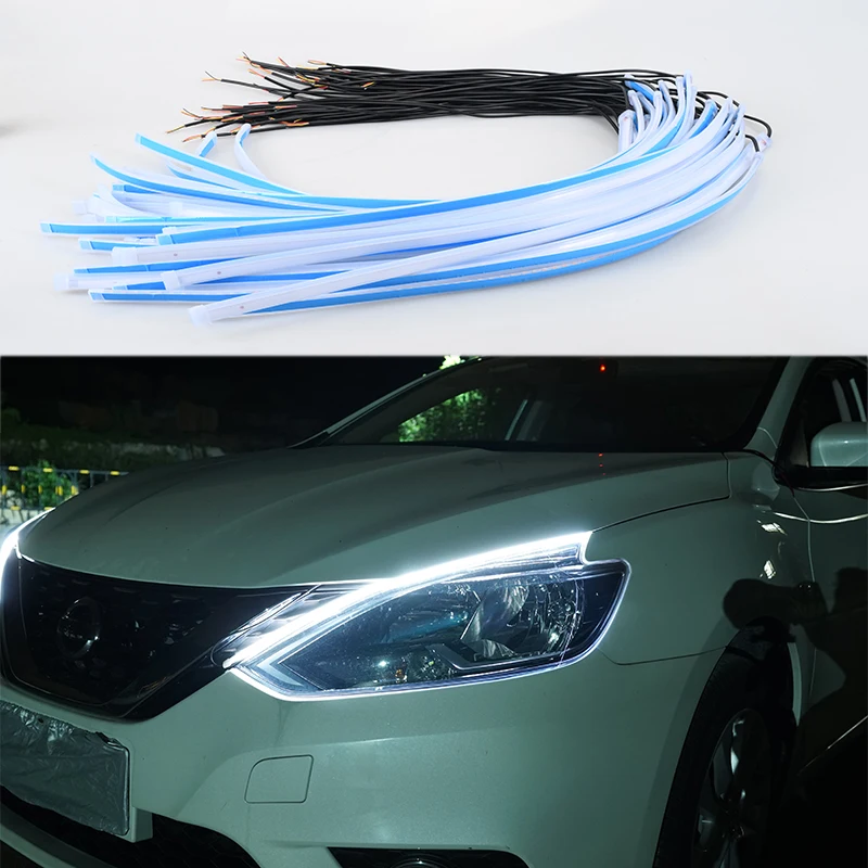 Светодиодные ленты для указателей поворота, Гибкие водонепроницаемые ленты для декоративного налобного светильника Автомобильные дневные ходовые огни с 12 В, 2 шт.