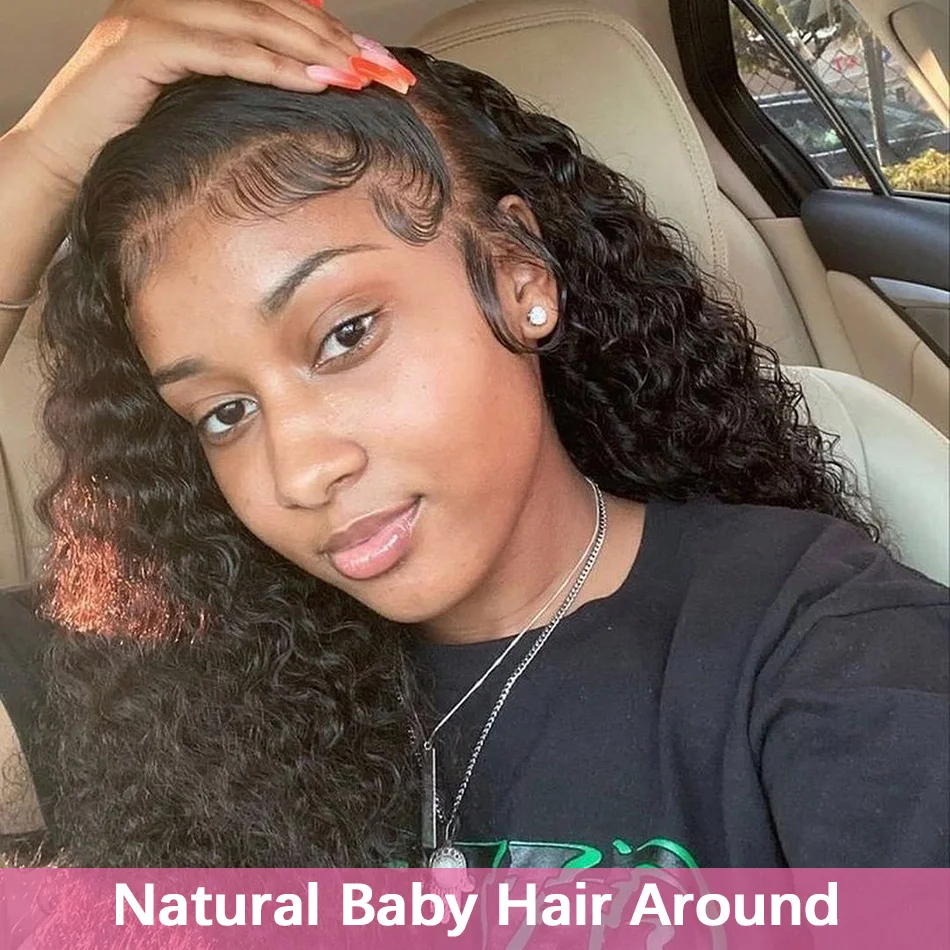 Парики из человеческих волос с глубокой волной, предварительно выщипанные бразильские волосы, с фронтальной застежкой, для черных женщин, свободные, с глубокими вьющимися кружевами, передние парики