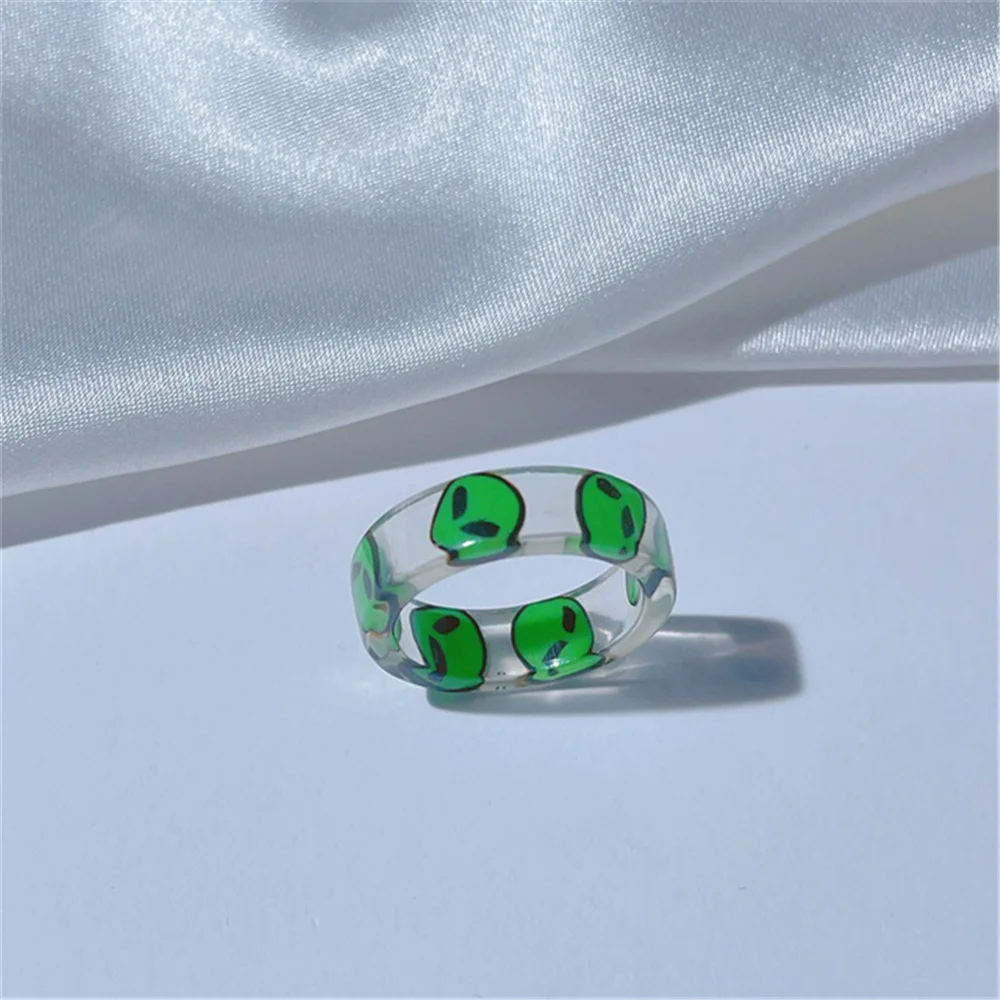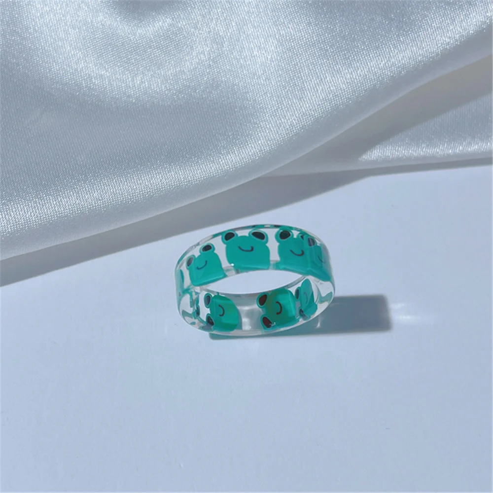 Кольцо женское из акриловой смолы, модное Ювелирное Украшение с желтым смайликом, зеленой лягушкой, винтажное прозрачное в эстетике