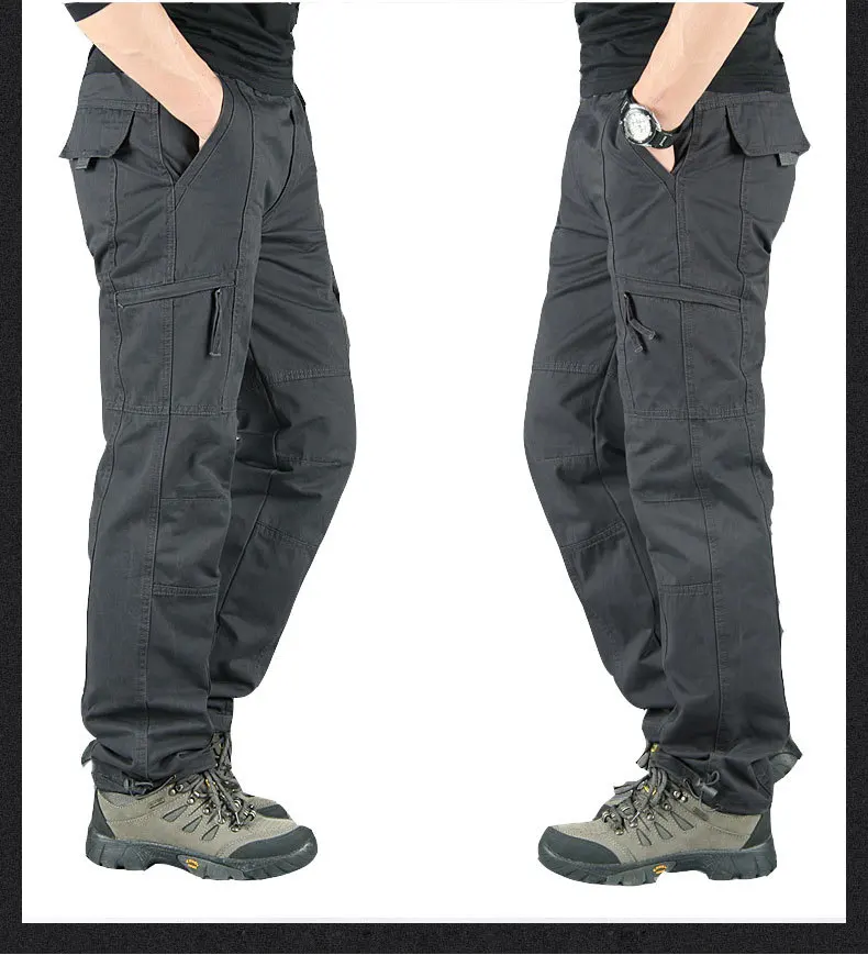 Зимние комбинезоны с флисовой подкладкой, брюки, мужские уличные теплые хлопковые длинные брюки, мужские прямые повседневные мужские брюки с множеством карманов