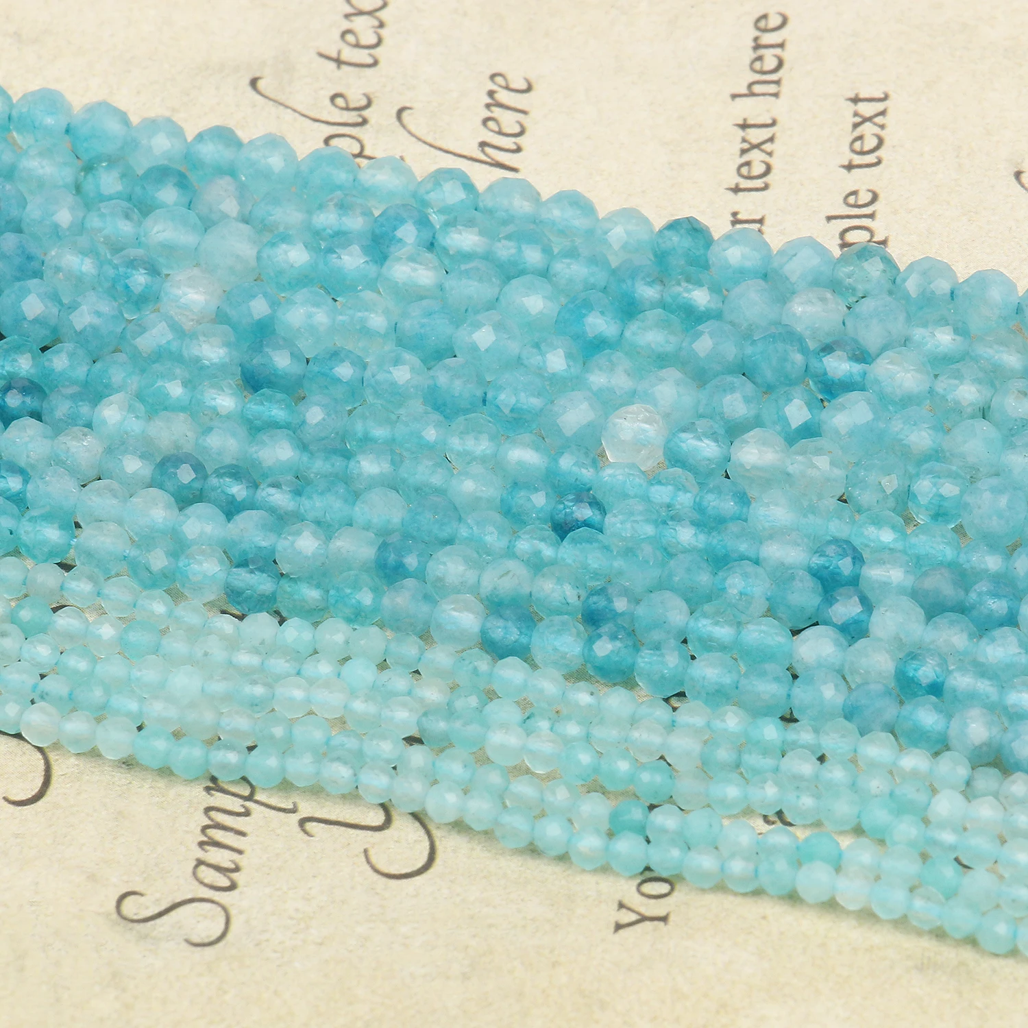 Бисер Аквамариновый голубой из натурального камня, граненый халцедон, бусины-разделители россыпью для изготовления ювелирных изделий сделай сам, серег, браслетов, ожерелий, 2, 3, 4 мм