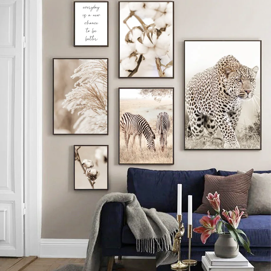 Одуванчик Рид Орхидея Лев бежевый пейзаж скандинавский стиль настен...