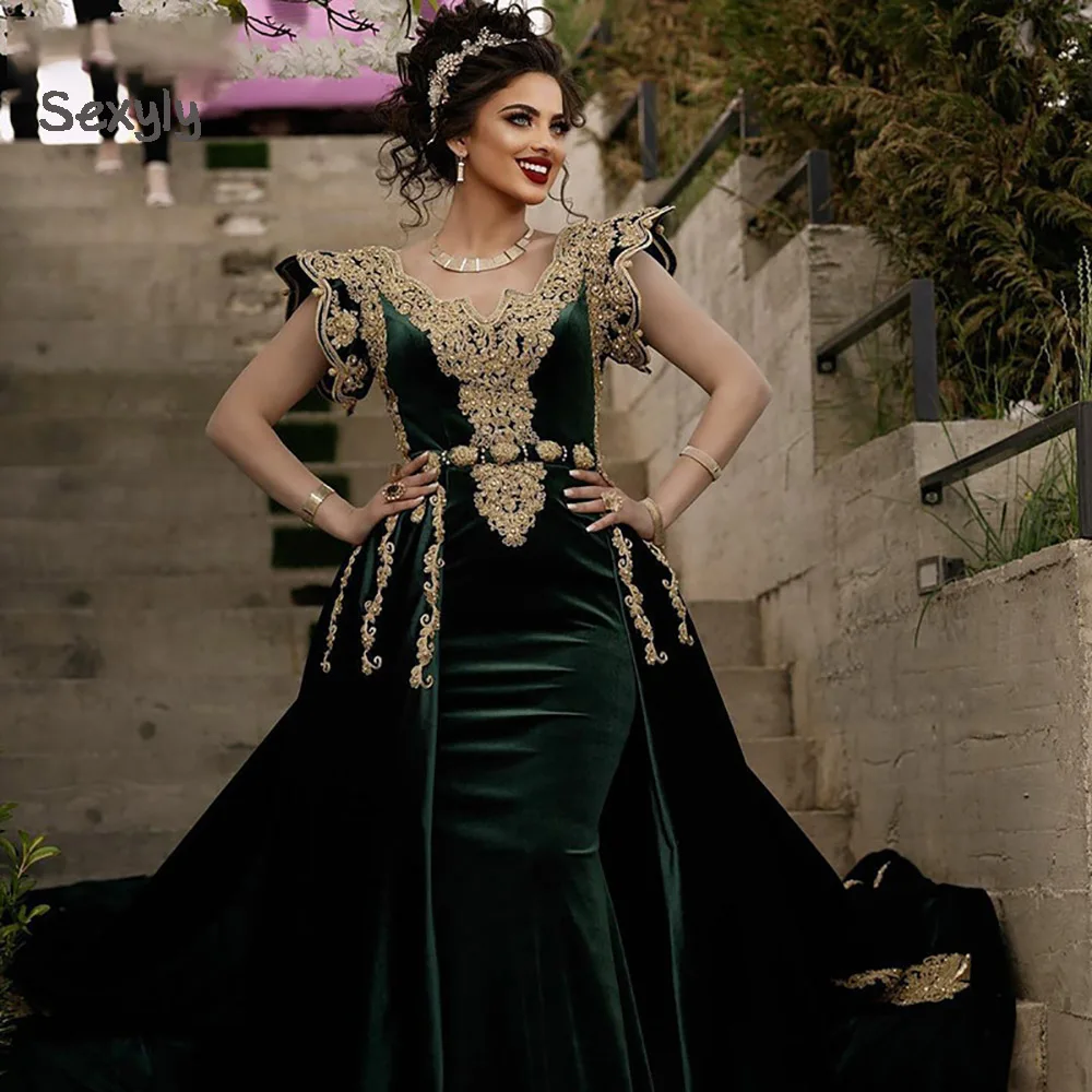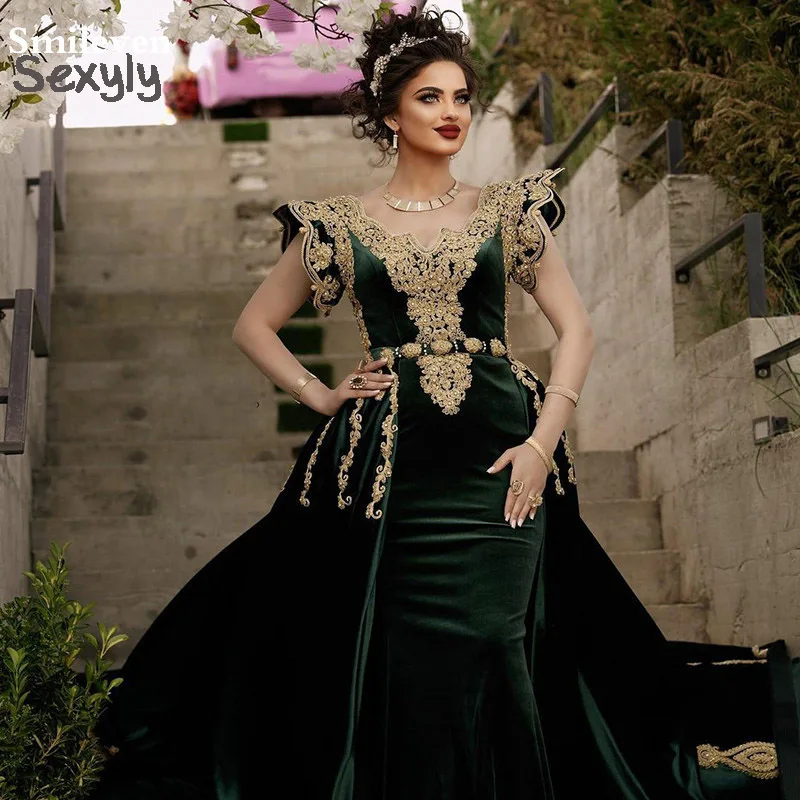 Размера плюс зеленый бархат Karakou Algerien вечерние платья с Over...