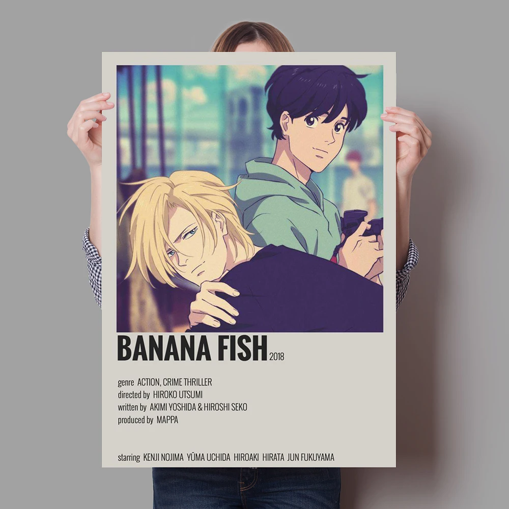 Банановая рыба минималистичный плакат, японское аниме, Картина на холсте, современное настенное искусство, картины, домашний декор для гостиной, мальчика, спальни