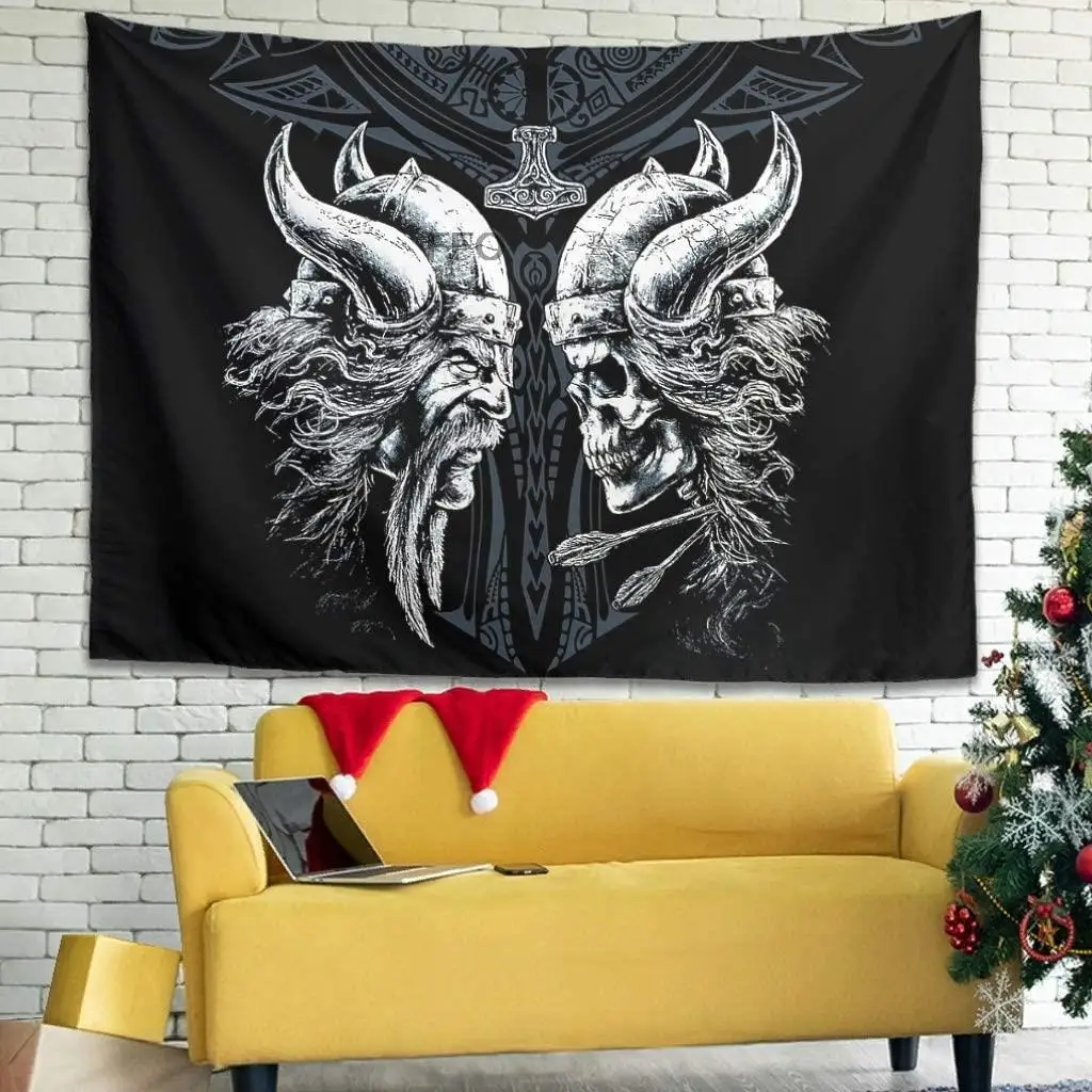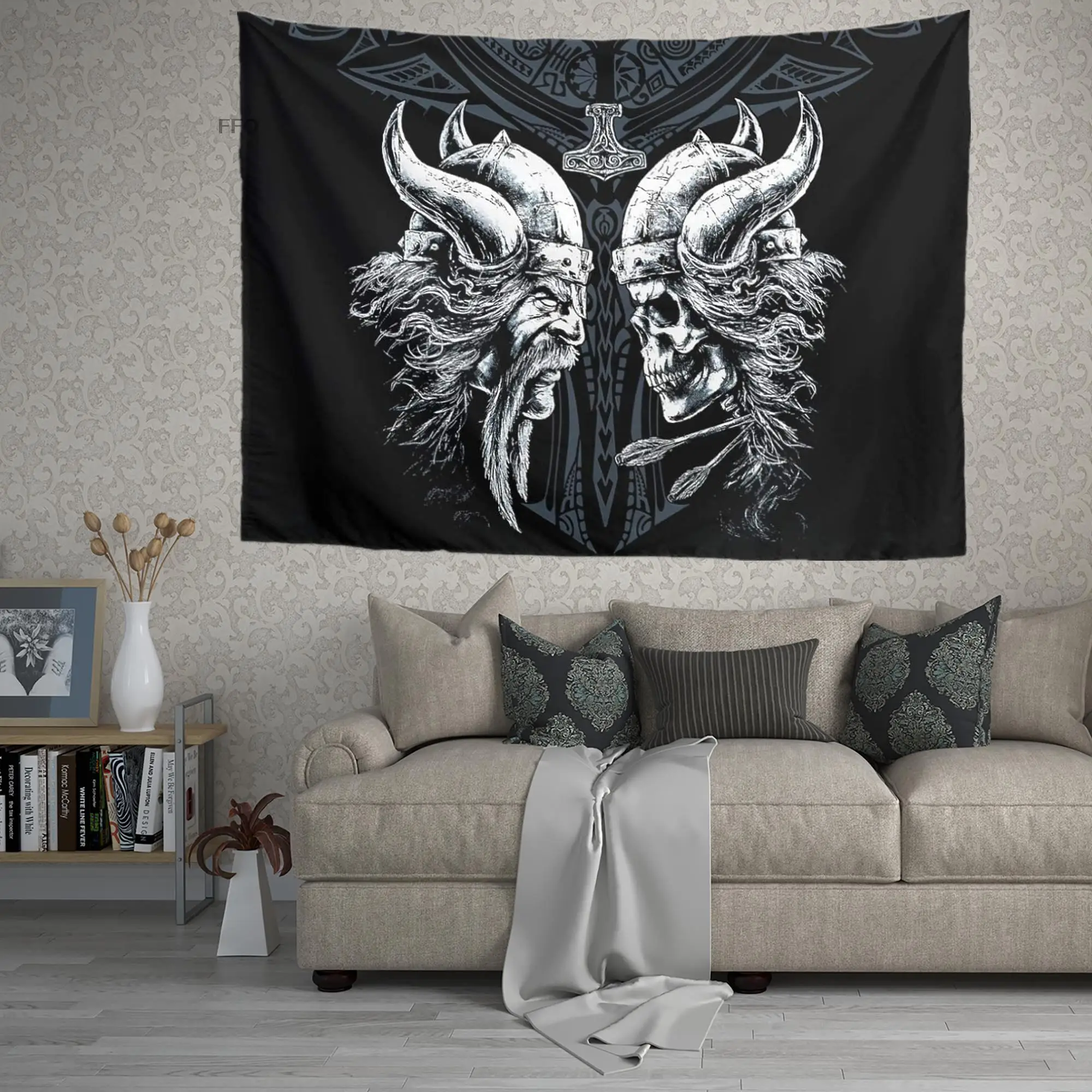 FFO шлем викингов, Череп, гобелен, молоток, рог Одина, мифологический принт, Настенная Подвеска для Нордического декора дома, спальни, гостиной