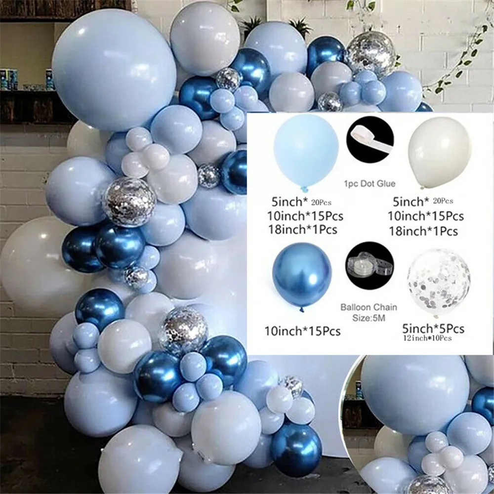 104 шт. синие серебряные макароны, воздушные шары, гирлянда, арка, ...