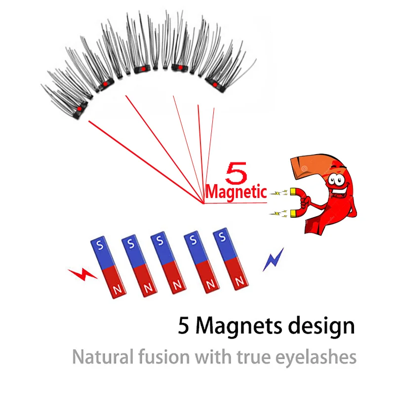 8 шт., 5 магнитных накладных ресниц, с магнитом