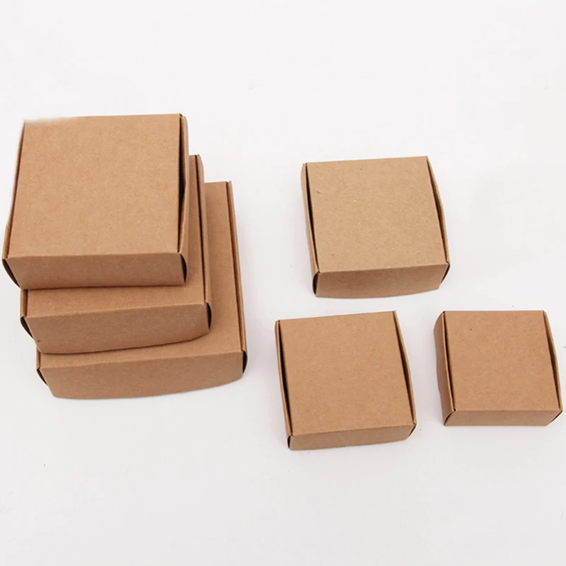 Милая квадратная упаковочная коробка из крафт-бумаги разных размеро...
