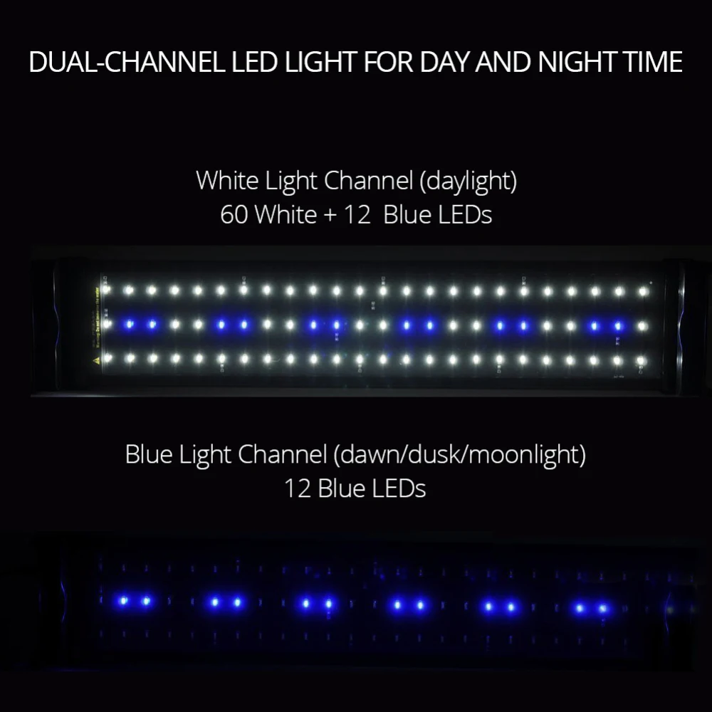 Супер яркие белые светодиоды и синие светодиоды сочетаются в удивительно гладком приспособлении, которое набрано для пресной воды в водной среде, как ничего раньше.