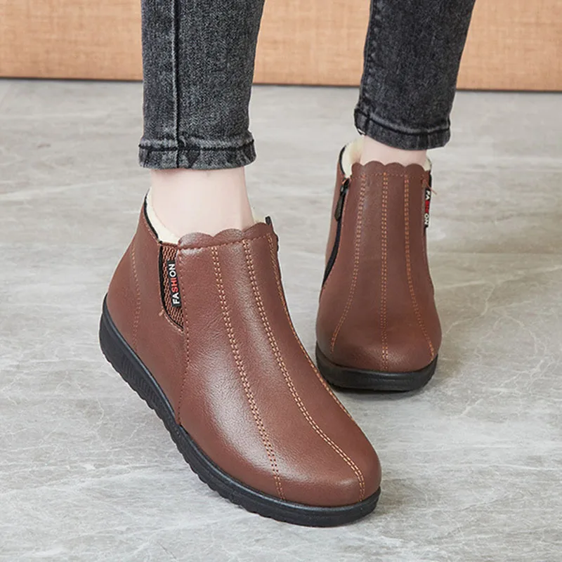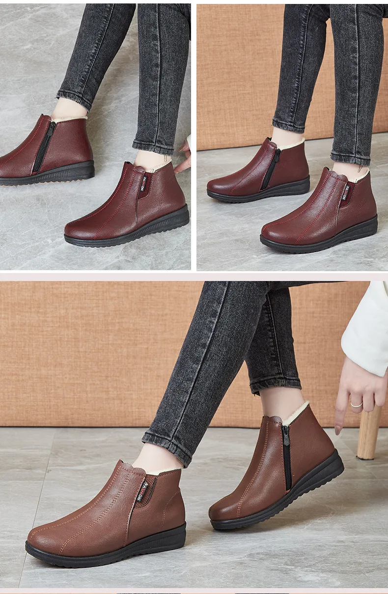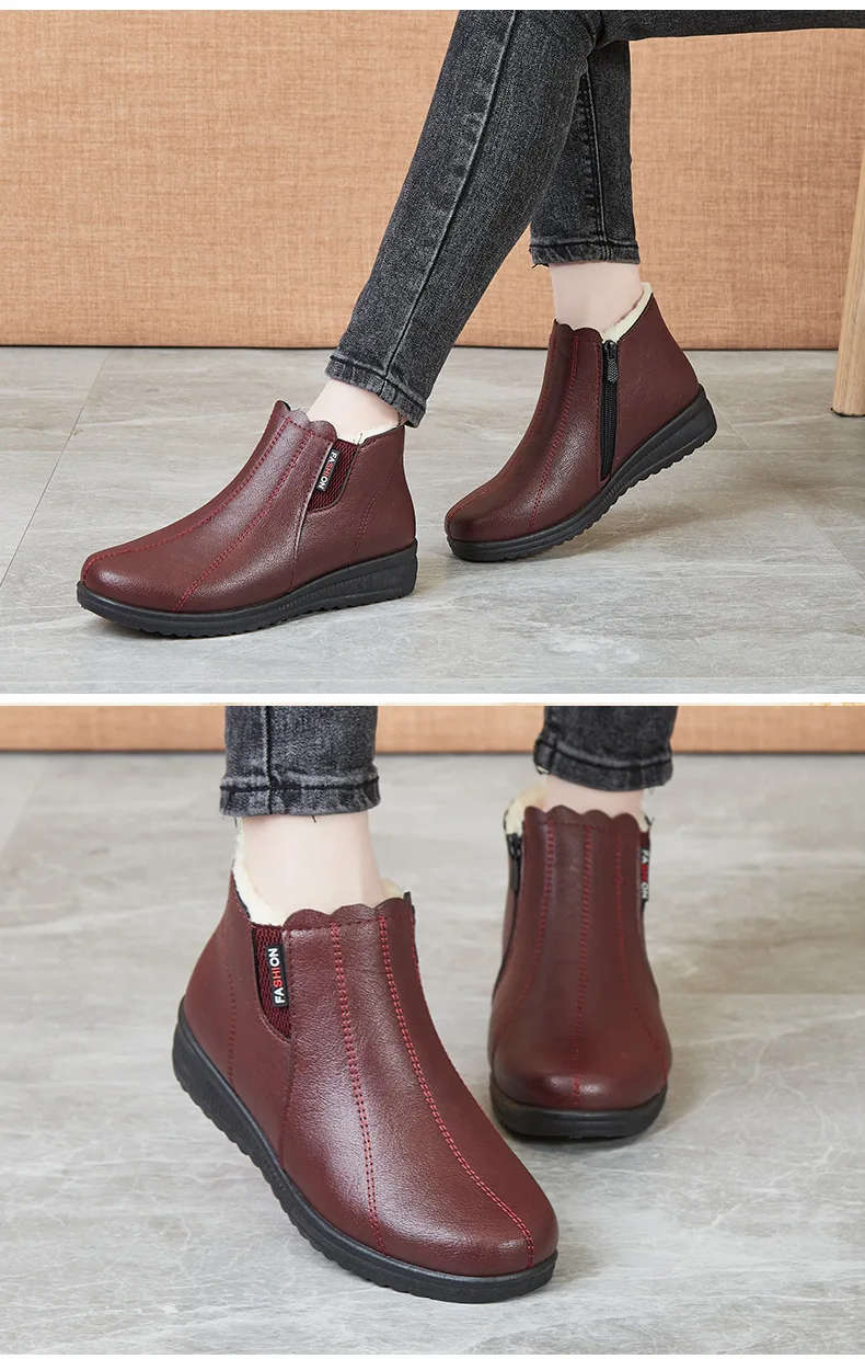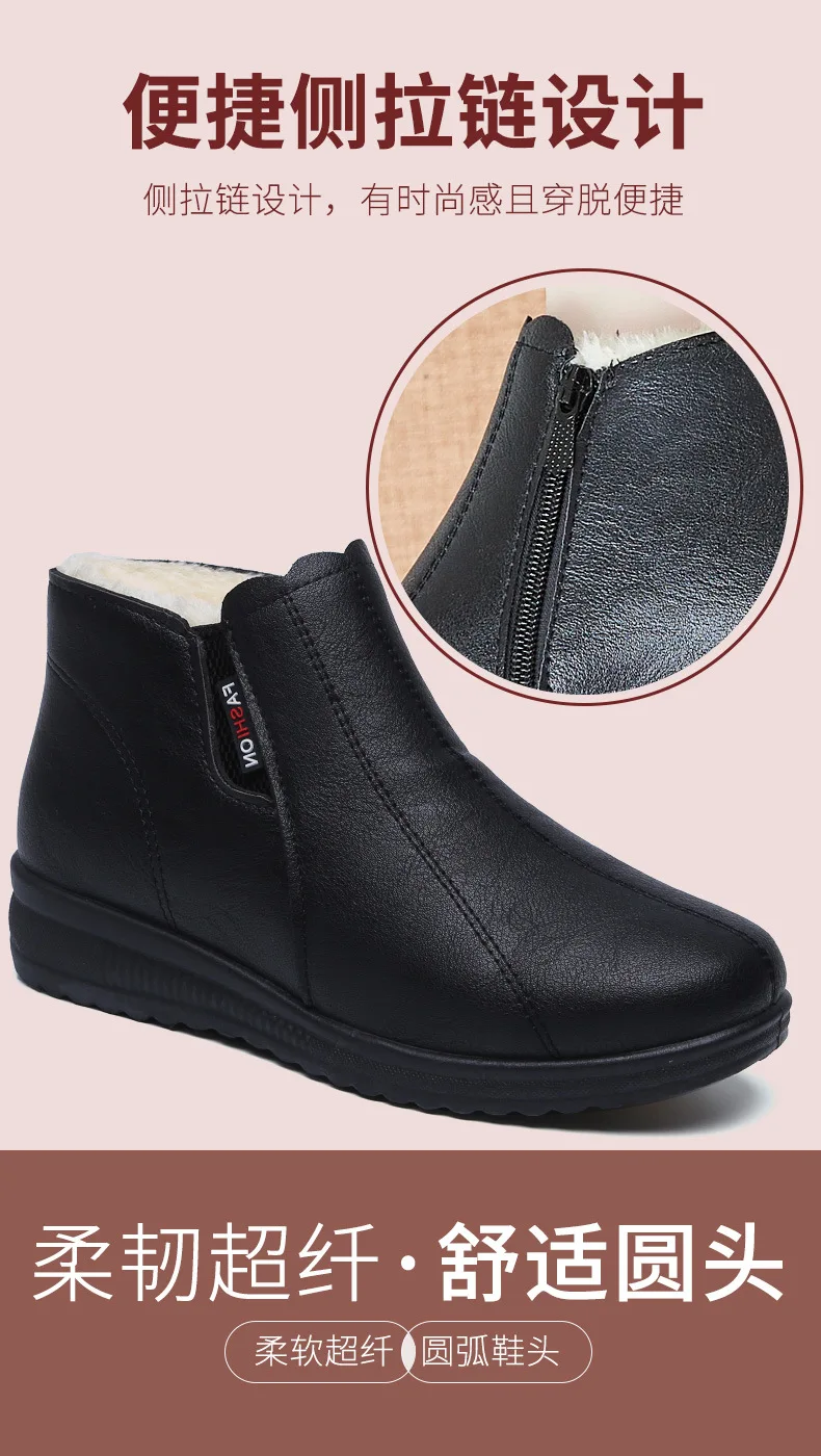зимняя женская обувь ботинки зимние женскик сапоЗимние ботинки для мам comemore для пожилых, хлопковые ботинки с мягкой подошвой для пожилых женщин, плюшевые теплые кожаные ботинки на плоской подошве для снежной погоды