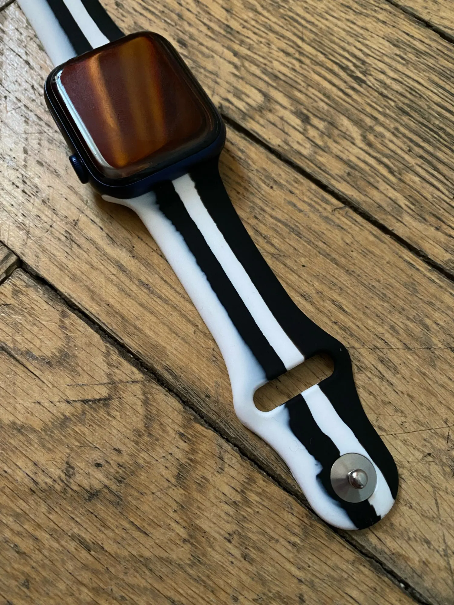 Красивый ремешок, красиво сидит. Обратите внимание, что некоторые цвета сочетаются, но вы получаете то, за что платите, хороший ремешок все то же самое