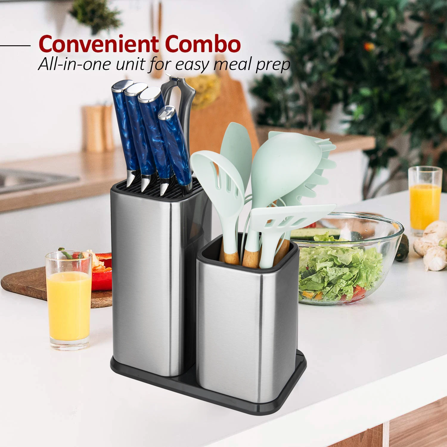 Многофункциональный держатель для инструментов, для Точилки ножей и кухонных ножниц и ложки. Установка ножей длиной до 21 см (8,25 дюйма), таких как нож шеф-повара, нож сантоку, нож для хлеба, нож для нарезки, нож для нарезки овощей, нож для стейка и т. Д.