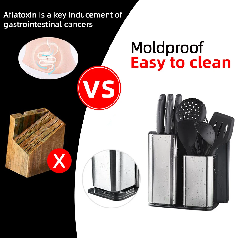 Изготовлен из пищевой нержавеющей стали 304. На кухне, где вода и ингредиенты часто связываются с ним, необходим практичный держатель ножа из нержавеющей стали. Он прослужит долгое время и не нужно тратить на него много времени или денег.