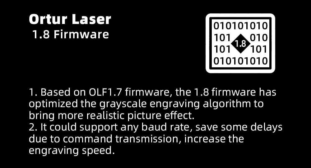 [Преимущество продукта] Ortur Laser 1,8 прошивка, квалифицированная для ESP32 MCU, оптимизирует алгоритм движения и увеличивает максимальную скорость шагового двигателя до макс. 5000 мм/мм.