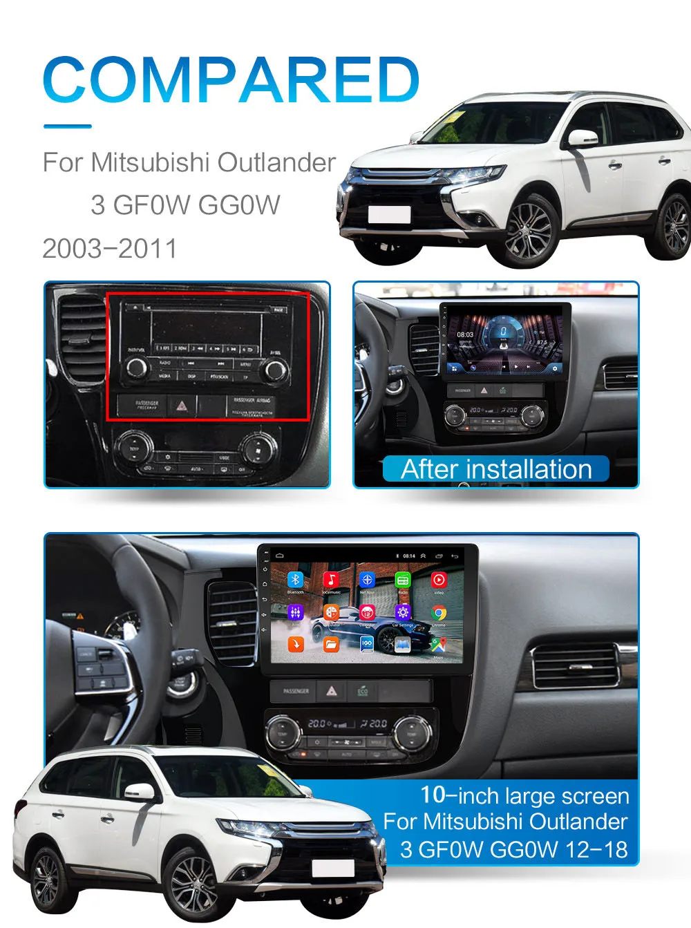 Android 10,0 автомобильное радио Mitsubishi Outlander 3 GF0W GG0W 2012-2018 10 дюймов 1024*600 8 ядер wifi Bluetooth Видео Аудио мультимедиа 2 din автомобильный dvd плеер