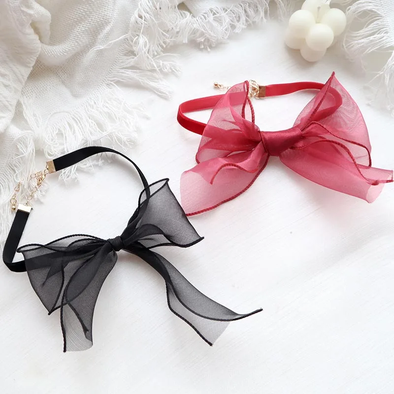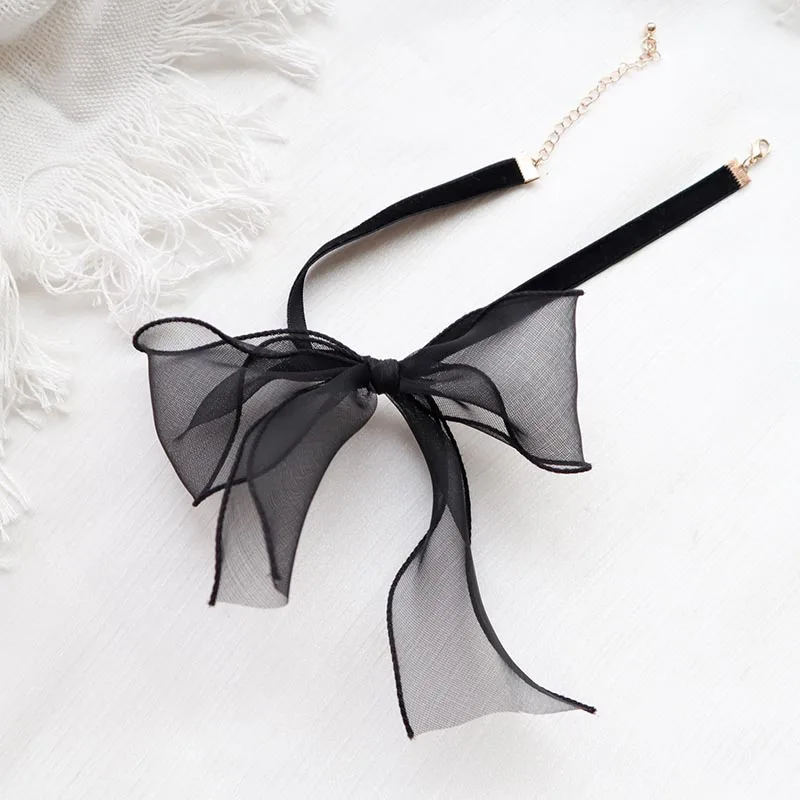 Новый сексуальный ошейник, черный кружевной чокер с бантом 2021, зимний женский чокер, Стильное короткое ожерелье для женщин, оптовая продажа ювелирных изделий
