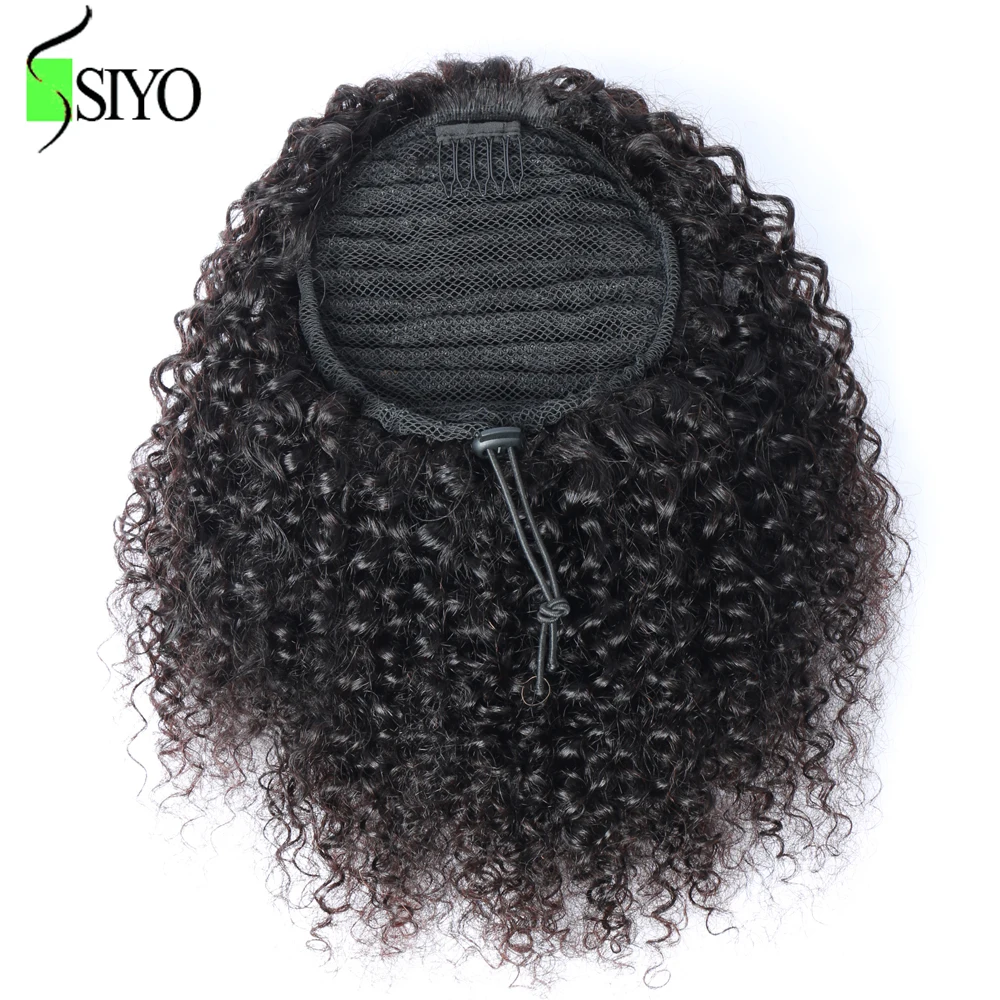 SIYO афро кудрявые на шнурке хвост бразильские волнистые накладные удлинители конского хвоста Remy человеческие волосы для черных женщин