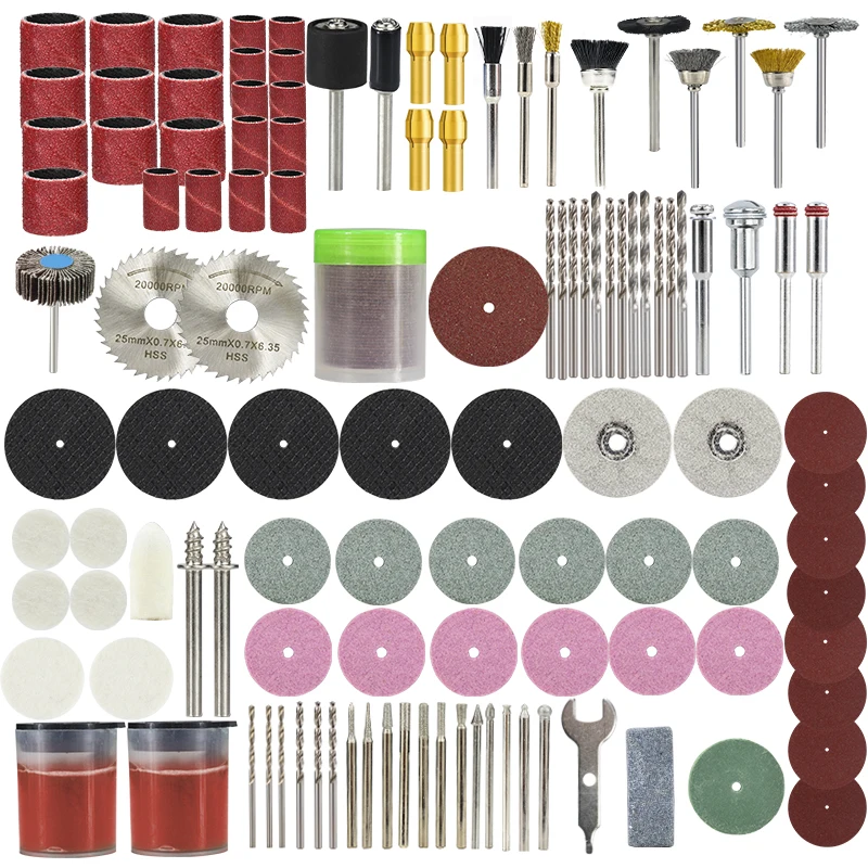 5. Эти электрические наборы для полировки имеют шлифовальную пасту, шлифовальный камень, наждачную бумагу, шлифовальный круг, полировальную пасту, нейлоновую щетку, стальную проволочную щетку, сверлильные Шатуны и т. д.