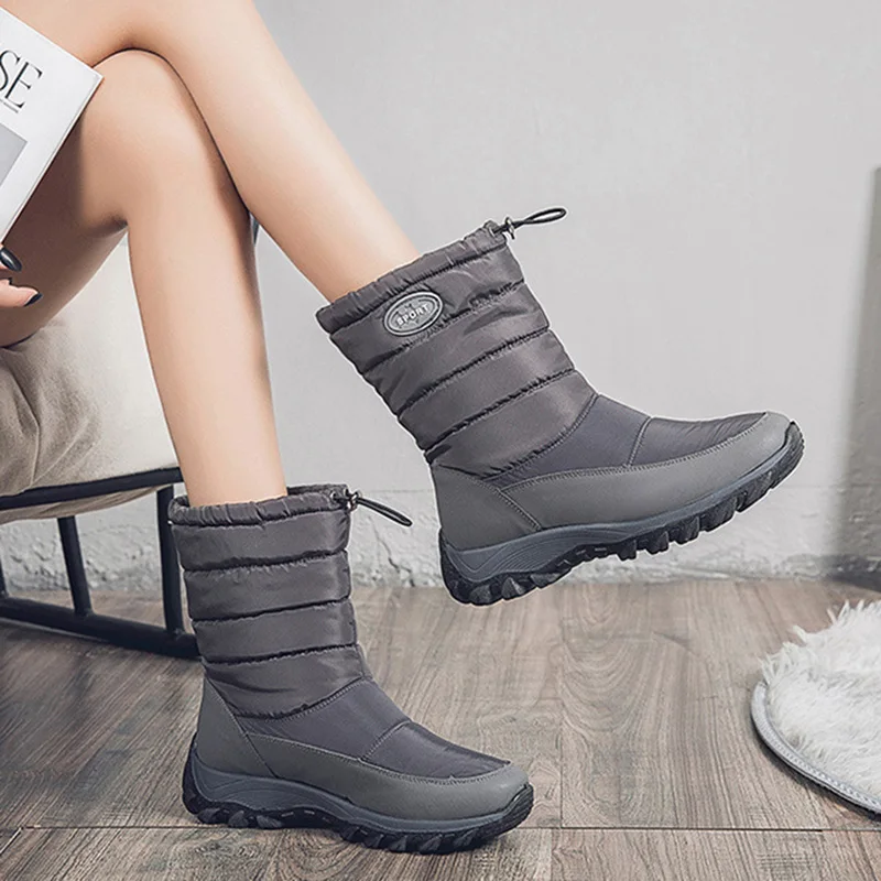 Женские сапоги, Зимние ботинки, женские ботинки, сапоги женские зимние, средней длины, бархатные теплые ботинки, хлопковая обувь, водонепроницаемые лыжные ботинки, женская обувь