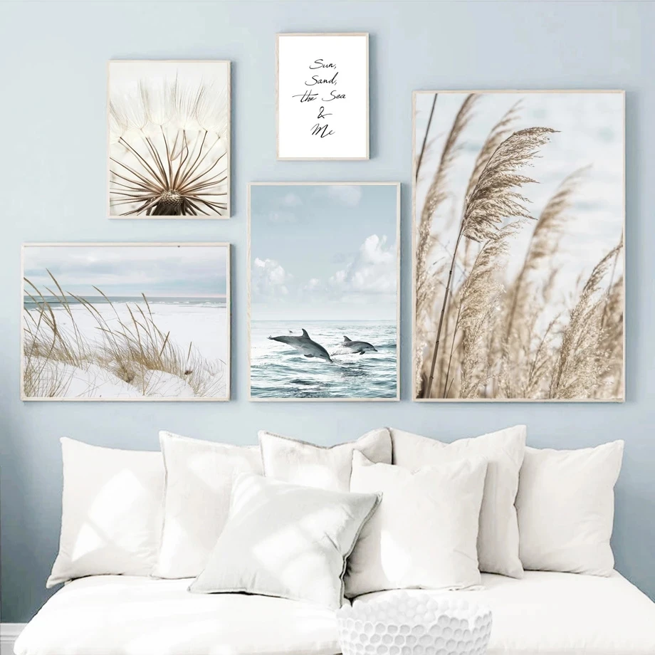 Рисунок на холсте с рисунком одуванчика, Дельфина, морского пляжа, цветов