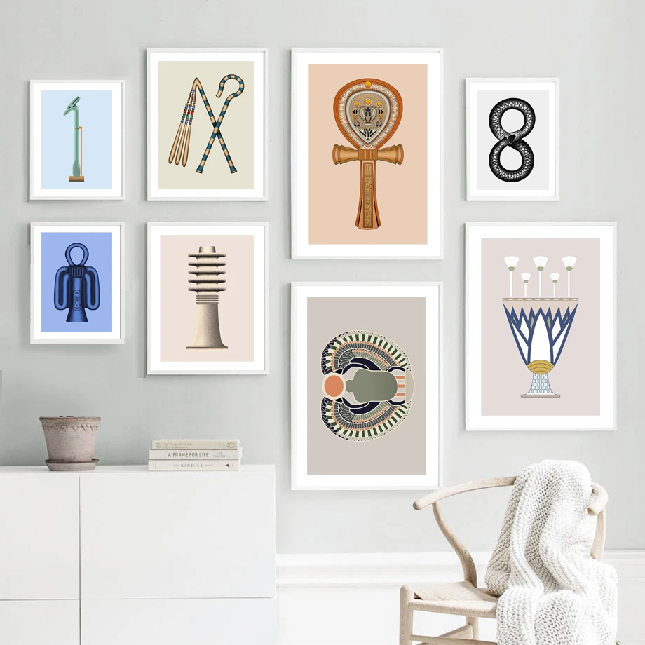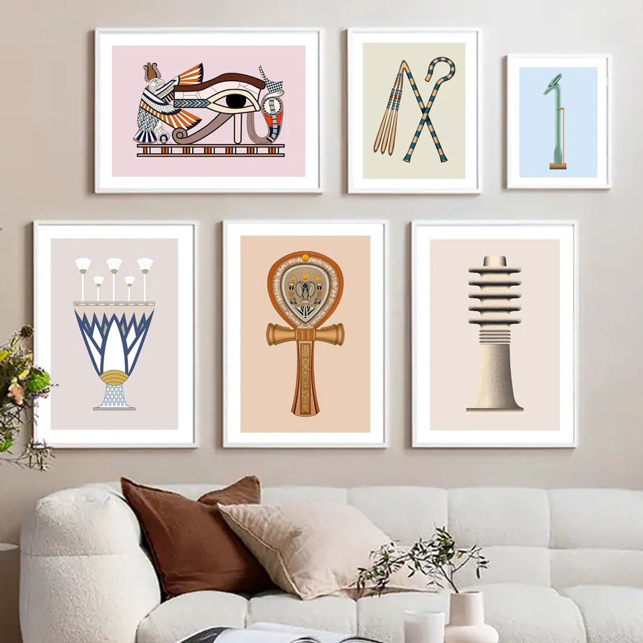 Цветной постер в Древнем Египте Лотос Анкх скептический глаз хора настенный художественный принт Картина на холсте настенные картины для декора гостиной