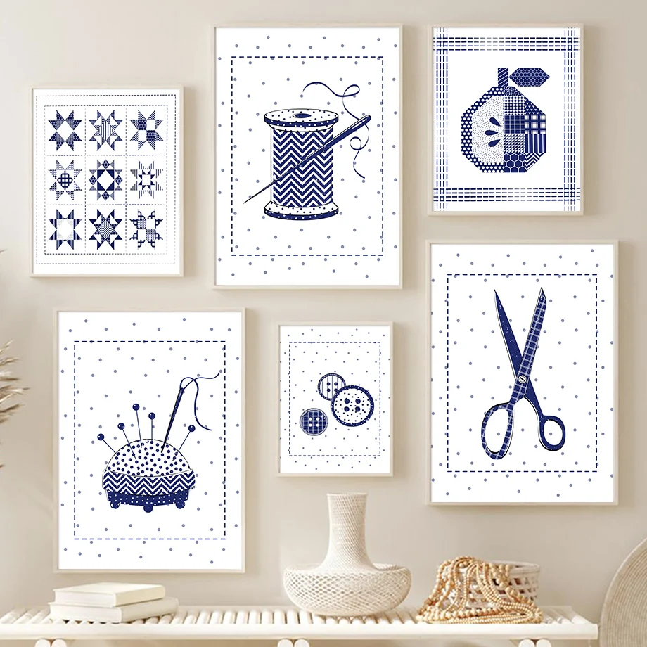 Ретро-швейная машина кнопка портной поставки скандинавский постер и принты настенная живопись на холсте настенные картины для декора гостиной