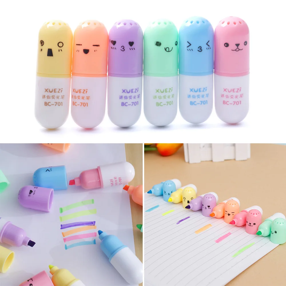 Yisuremia 6 шт.лот Kawaii Хайлайтер с мягким наконечником светлые ц...