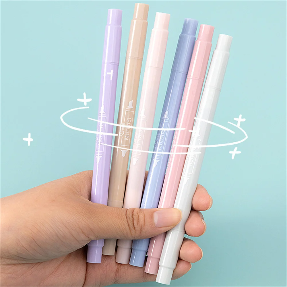 Новинка 2022, 6 шт., двухсторонний хайлайтер ярких цветов, маркеры манги, пастельный хайлайтер, набор канцелярских принадлежностей