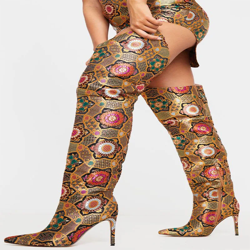 Женские сапоги выше колена с вышивкой, новинка сезона осень-зима 2021, модные привлекательные универсальные сетчатые сапоги в европейском и американском стиле с острым носком