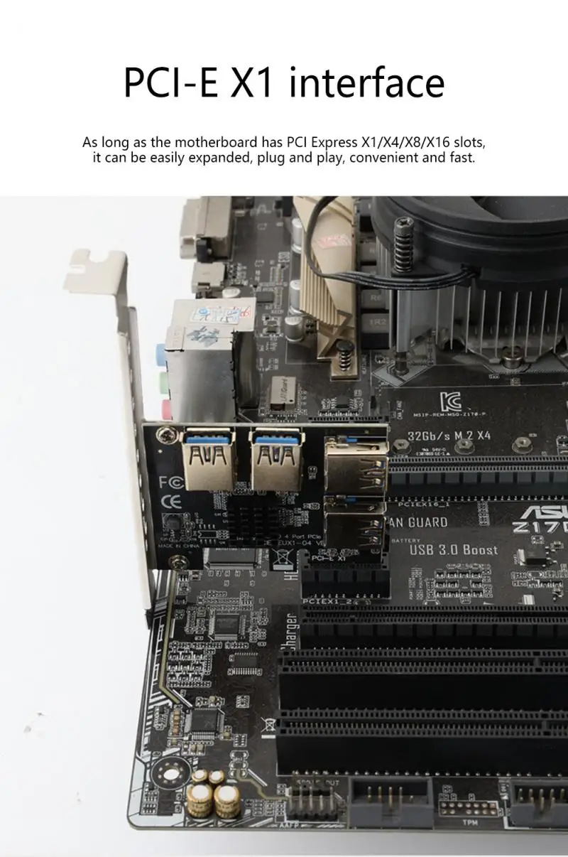 Type2Gilded PCIE 1 to 4 USB 3.0 Riser Card