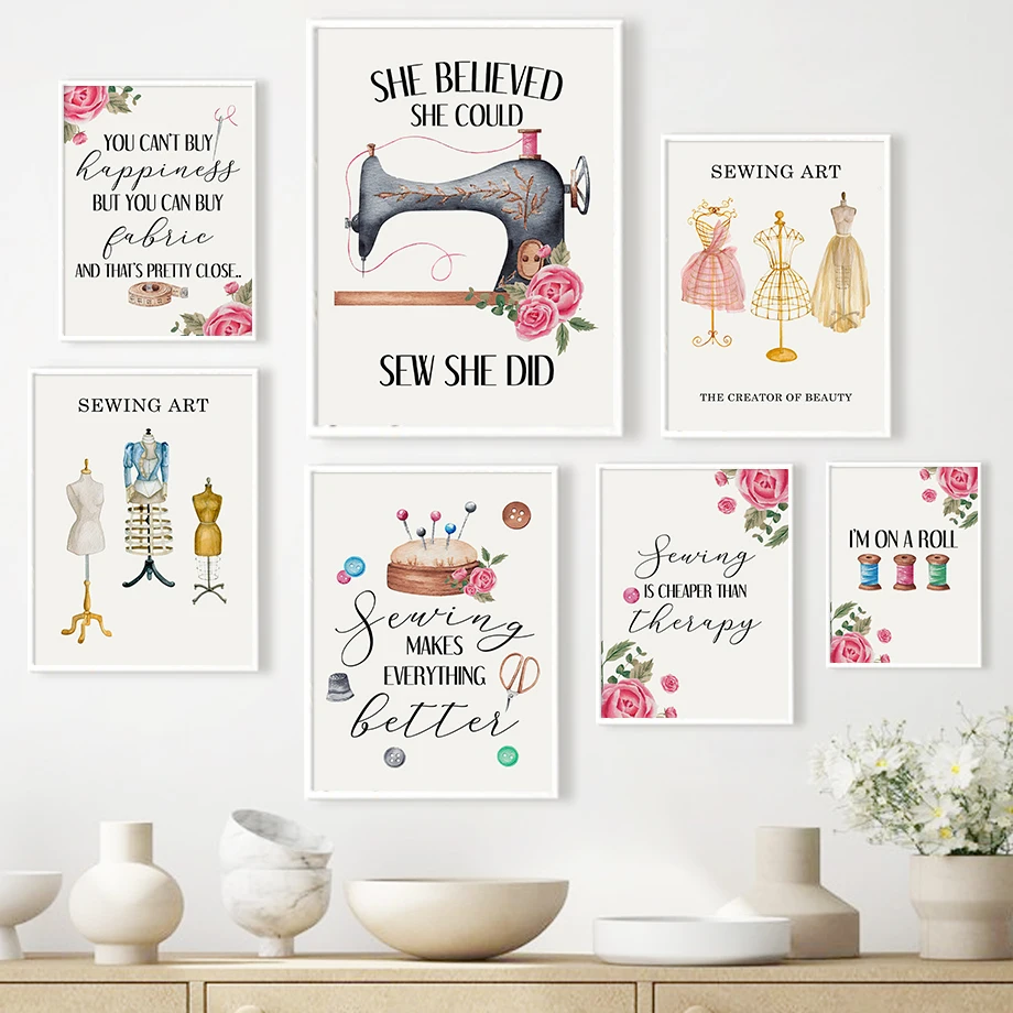 Модная Цветочная швейная машина, строка для платья, скандинавский плакат и принт, настенная живопись на холсте, настенные картины для декора гостиной