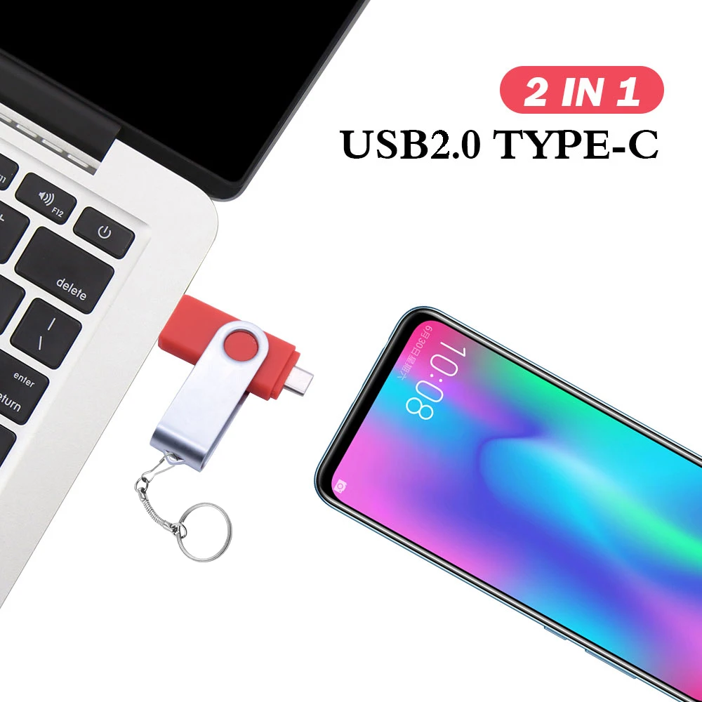OTG USB флеш-накопитель Type C, флеш-накопитель 256 ГБ, 128 ГБ, 64 ГБ, 32 ГБ, 8 ГБ, 4 Гб, USB флешка 2,0, флеш-накопитель для устройств Type-C для ПКноутбукателефона