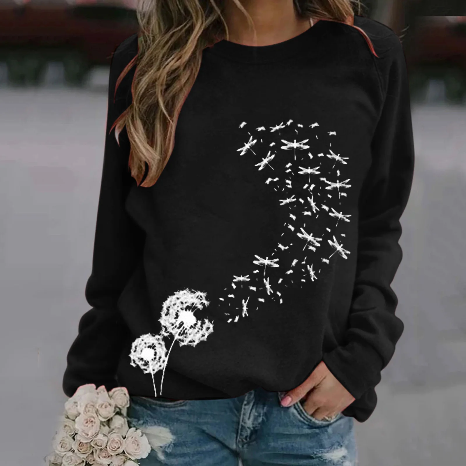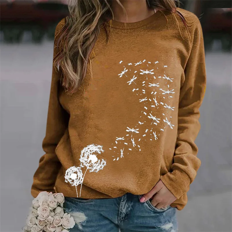 Женская футболка с длинным рукавом, круглым вырезом и принтом одуванчика
