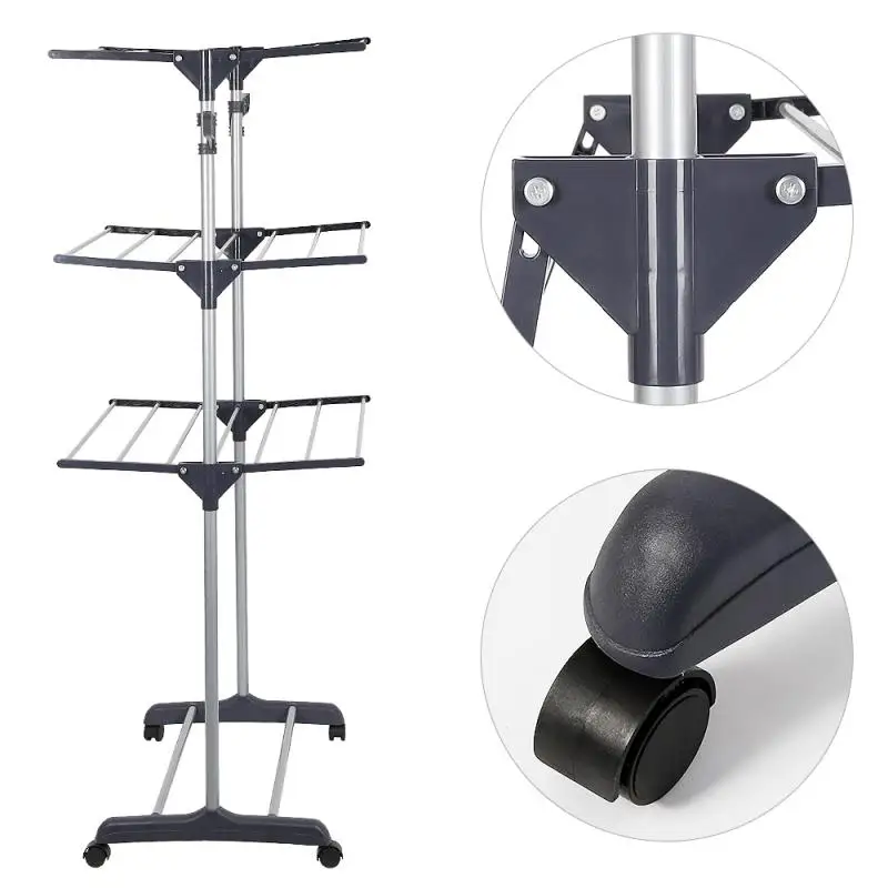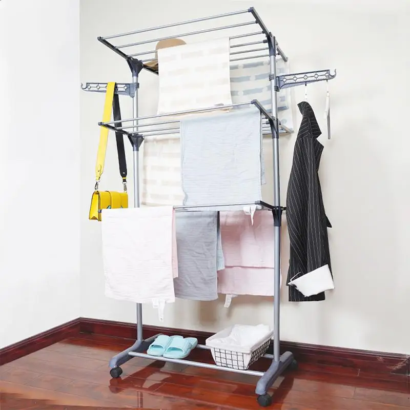 Многофункциональная вешалка для одежды, стойка, 4 слоя, складная, экономия места, сушилка для одежды, вертикальная напольная стойка, телефон, HWC
