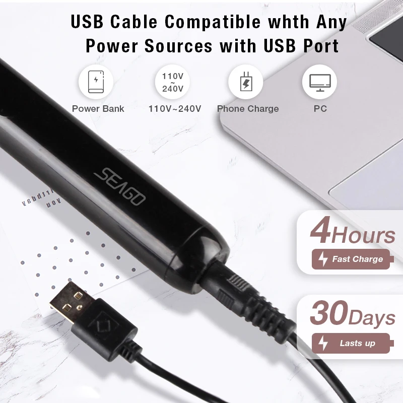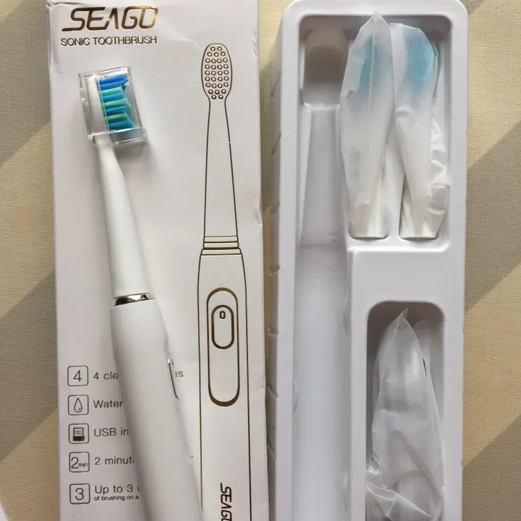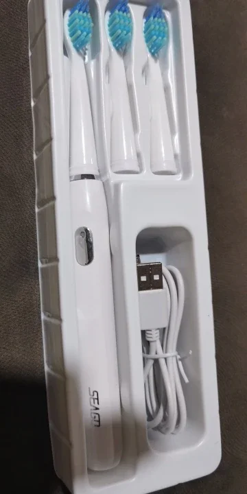 Зубная щетка Seago SG551 звуковая электрическая, перезаряжаемая с USB, таймер на 2 минуты, 4 режима, водонепроницаемость IPX7, с 3 сменными насадками