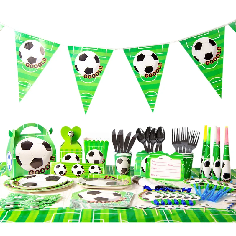 Зеленая Футбольная тема для детского дня рождения, одноразовые аксессуары, салфетка для чашек, соломенная шляпа