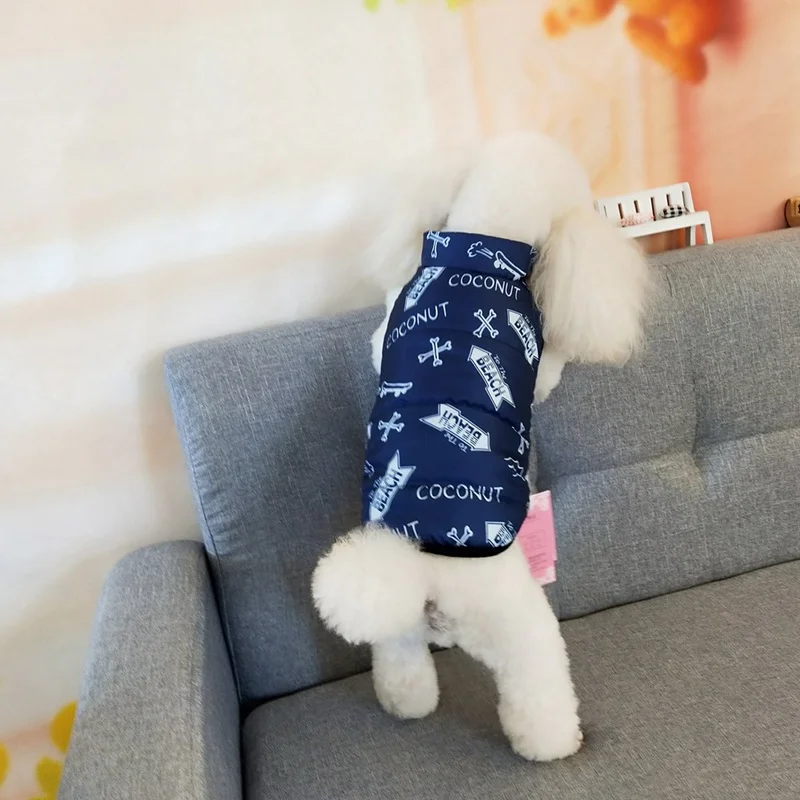 Одежда для домашних питомцев, зимняя теплая куртка для домашних животных, пальто для собаки с буквенным принтом, собачья ветрозащитная теплая куртка с лезвиями для маленьких и больших собак