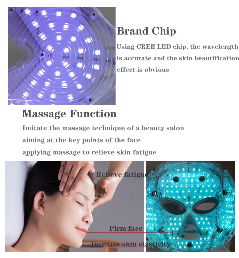 1. Если вы хотите, чтобы эффект маски улучшился, мы предлагаем вам использовать профессиональный реляционный продукт по уходу за кожей в то же время, светодиодный светильник будет способствовать усвоению продукта по уходу за кожей, повышает эффективность средств по уходу за кожей, а затем улучшает эффект.